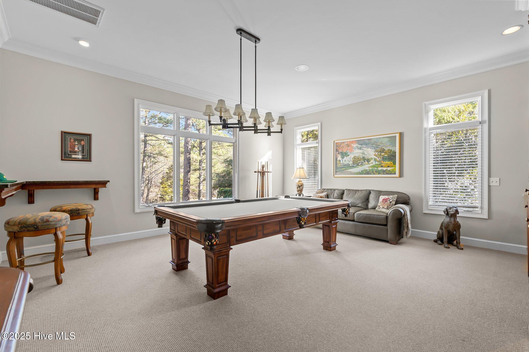 Seldom does a Forest Creek resident on the best location of the South course of a Tom Fazio design become available tucked away on a peaceful cul-de-sac in the private gated community of Forest Creek. This custom built home sits on approximately 1.2 acres sitting on the green of hole #6 of the famed South Course. Recent updates include the roof, water heaters, gas fireplace and HVAC. The gorgeous 6 bedroom/5.5 bathroom home is minutes from our private airport and close to the village of Pinehurst while this home is spacious for entertaining.